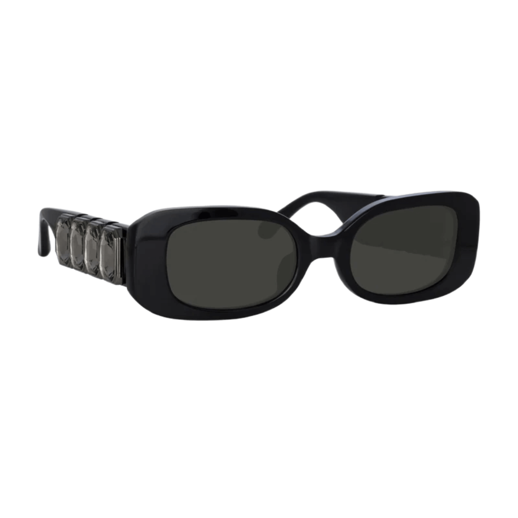 These rectangular sunglasses from the LINDA FARROW collection are sculpted from Italian acetate with gemstones on the temple of the frame. Hand-polished to achieve a glossy high-shine.