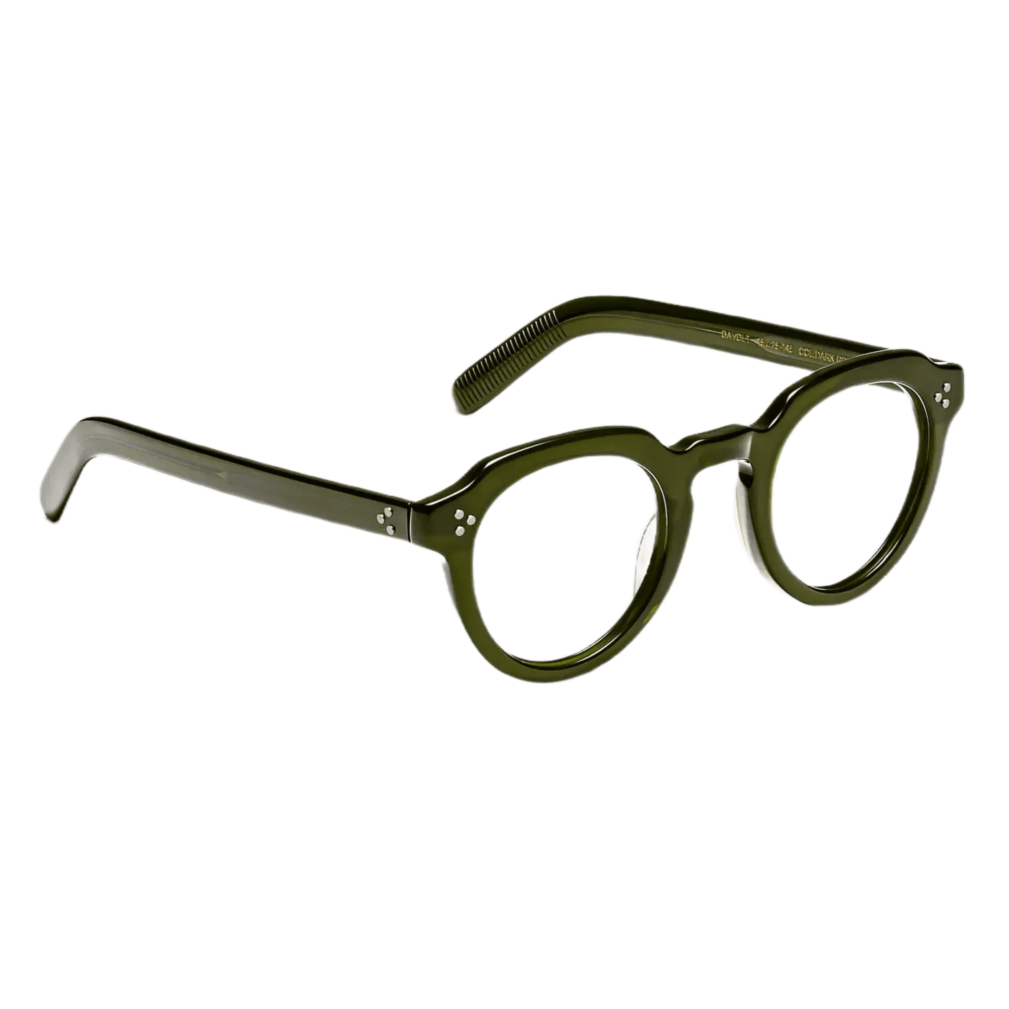 - Featuring raised three dot rivets on the front and temples