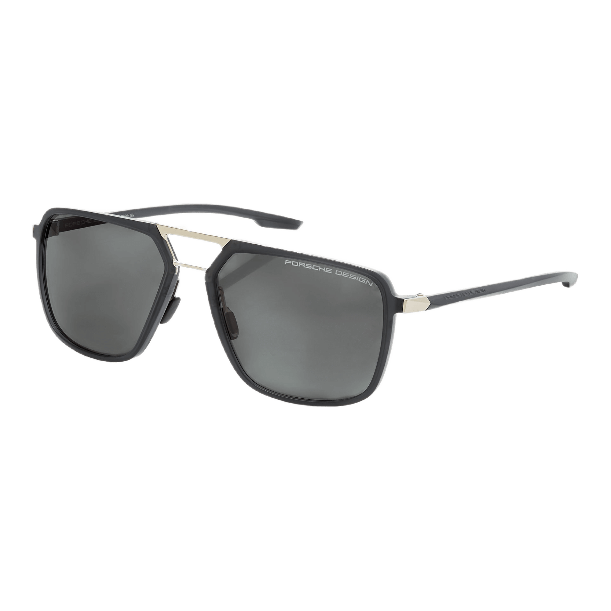 Drawing inspiration from futuristic automotive design, the Porsche Design P´8934 sunglasses from the Cyber Tec series boast an exhilarating and masculine design language. Featuring a futuristic-looking frame with a double bridge and 3-dimensional temple design, these sunglasses showcase a captivating blend of stainless steel and high-performance RXP® materials. Taking cues from the intricate details found in Porsche sports cars, the unique aesthetic of these sunglasses mirrors the clean lines of the Porsche 911 GT2 RS, translated into complex, three-dimensional temples. This results in a distinct edge that imbues the glasses with a dynamic flair when viewed from the side. Furthermore, the sculptural temple tips, reminiscent of the style of Porsche 911 rear lights, further emphasize the progressive and automotive-inspired engineering of these sunglasses.