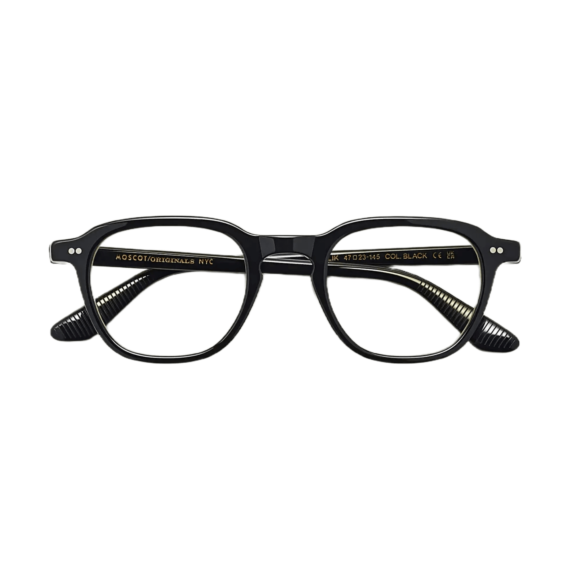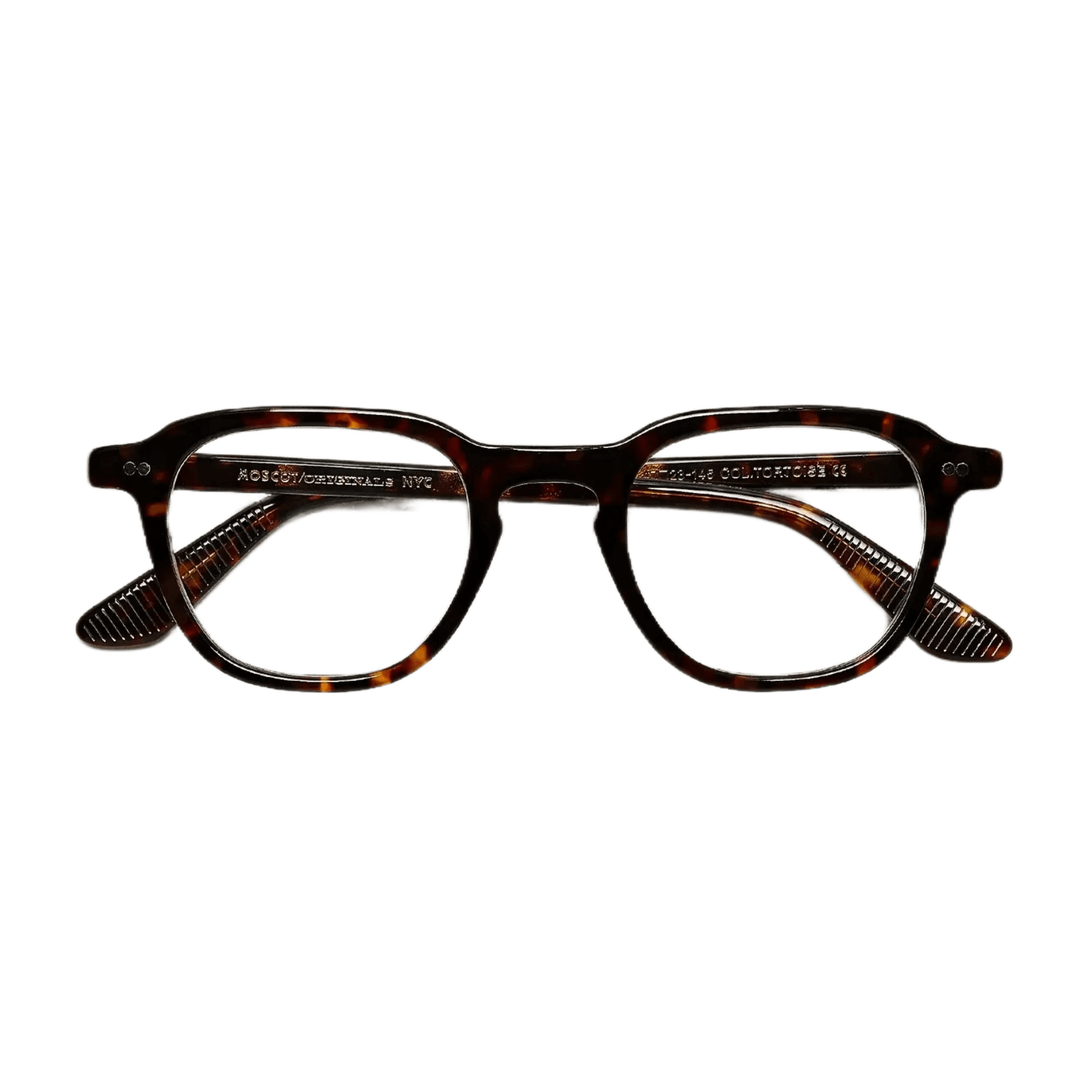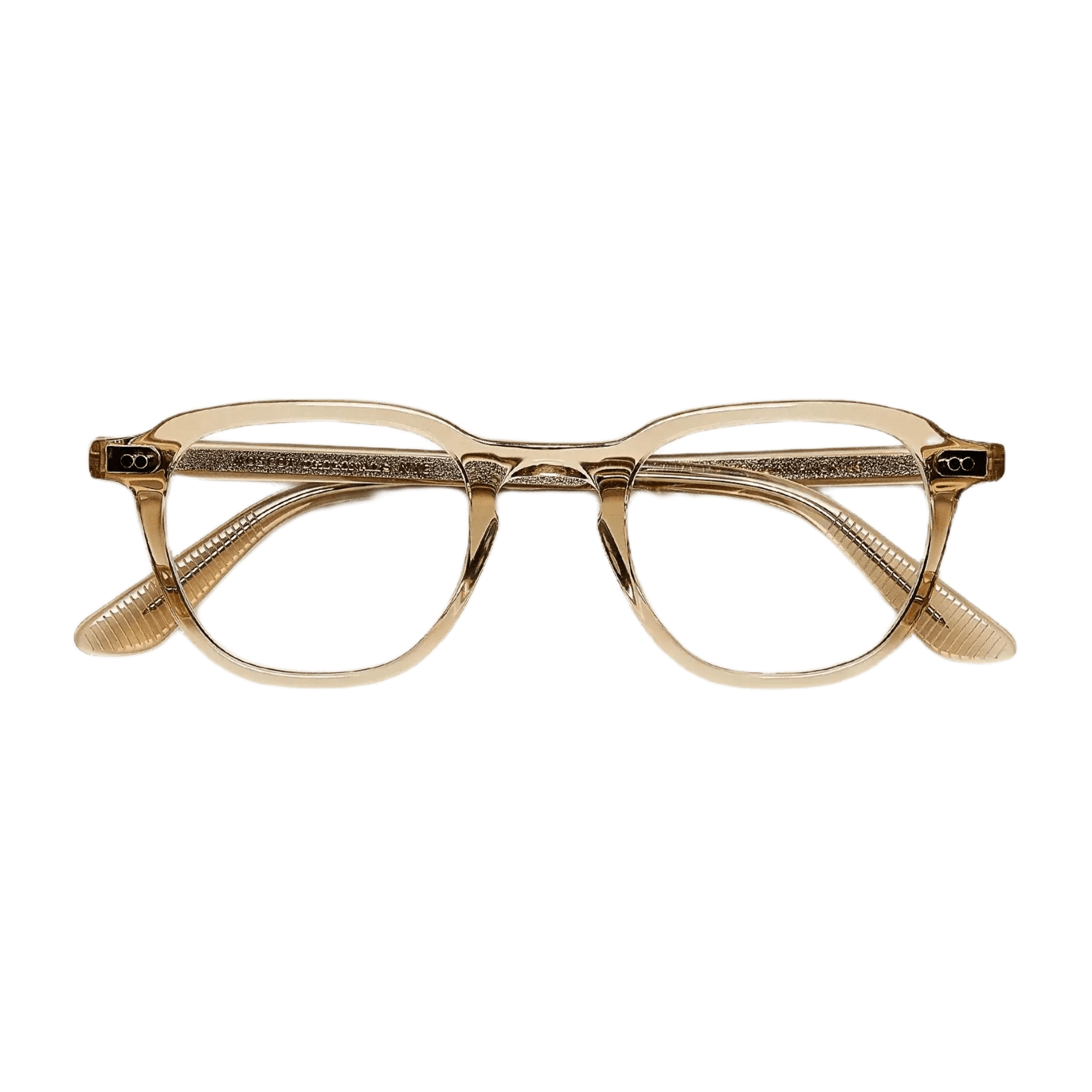 - MOSCOT SPIRITフレームのシグネチャー真鍮テンプルチップ
