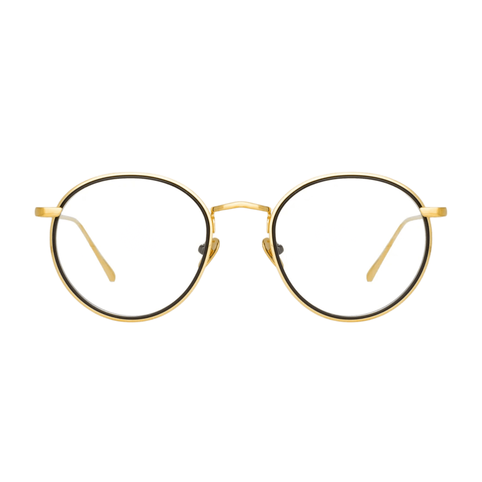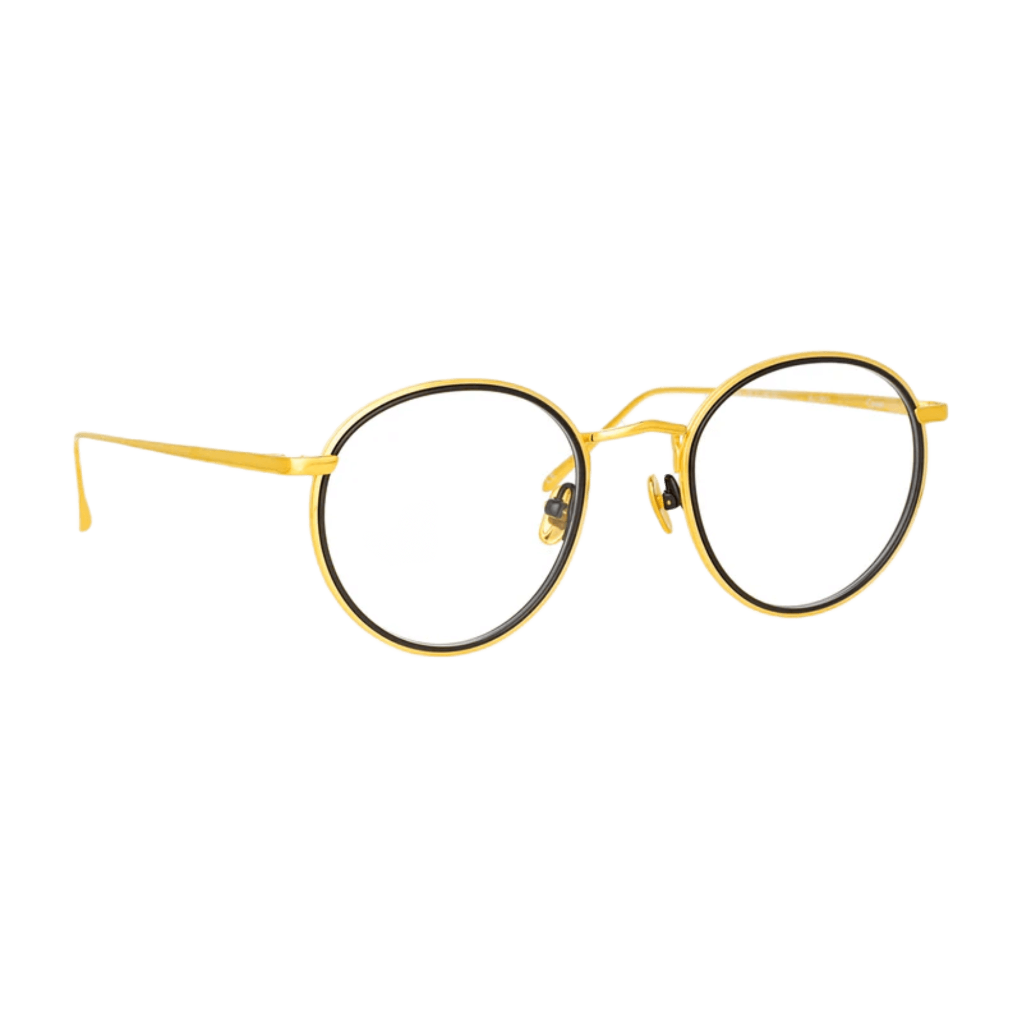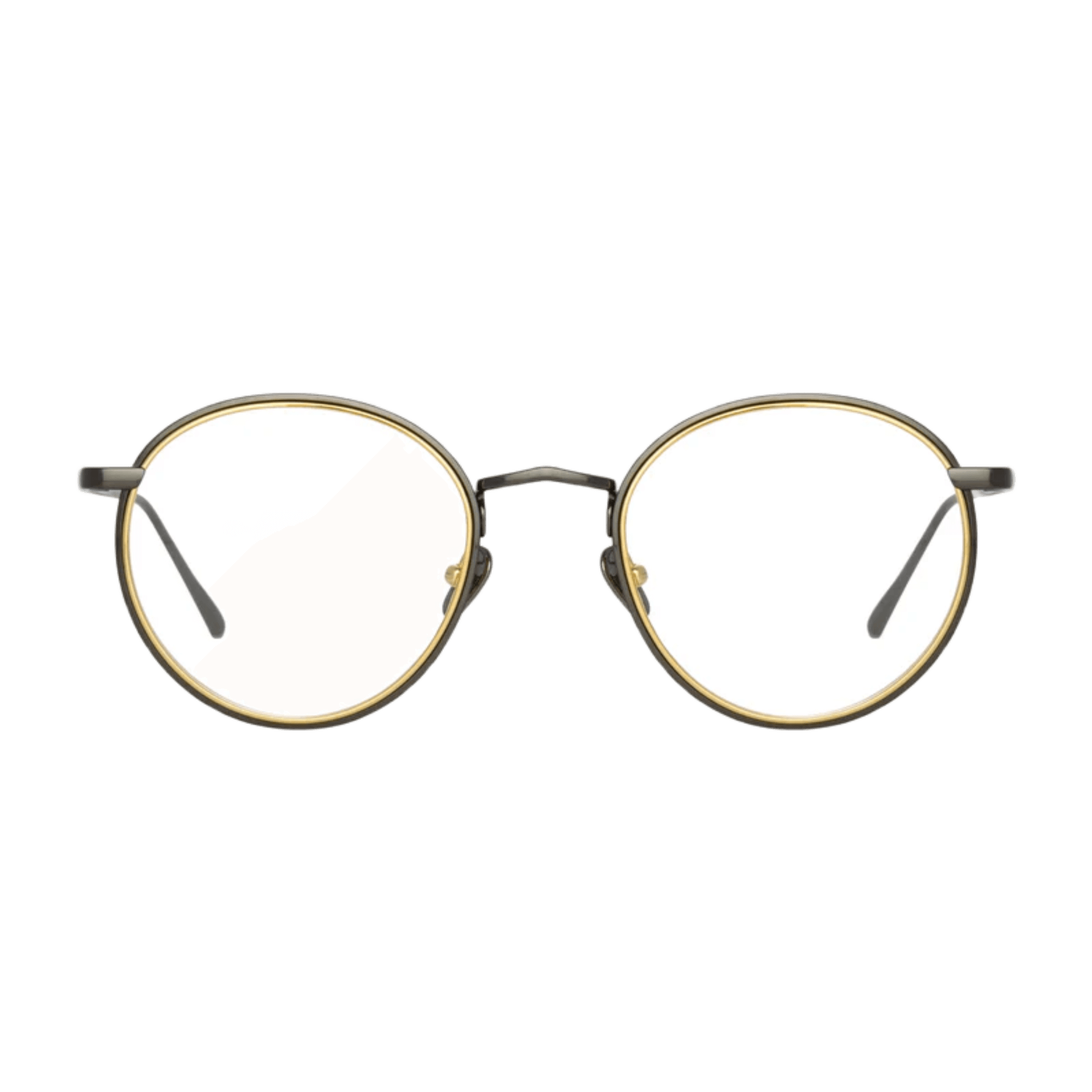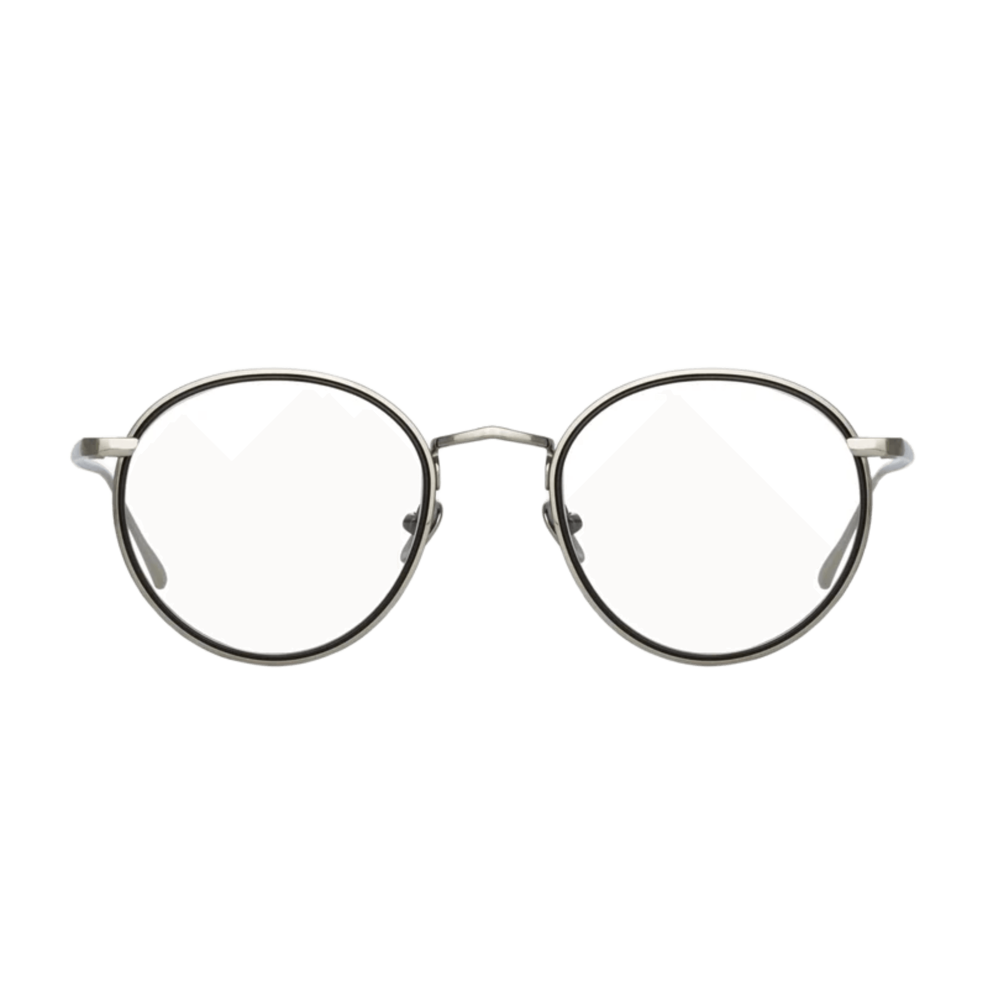 Delicate oval optical frames from the LINDA FARROW collection are crafted from fine titanium layered together, creating a striking contrast. The outer edge of the frame is pressed with step detailing, and it flows into the custom logo nose bridge.