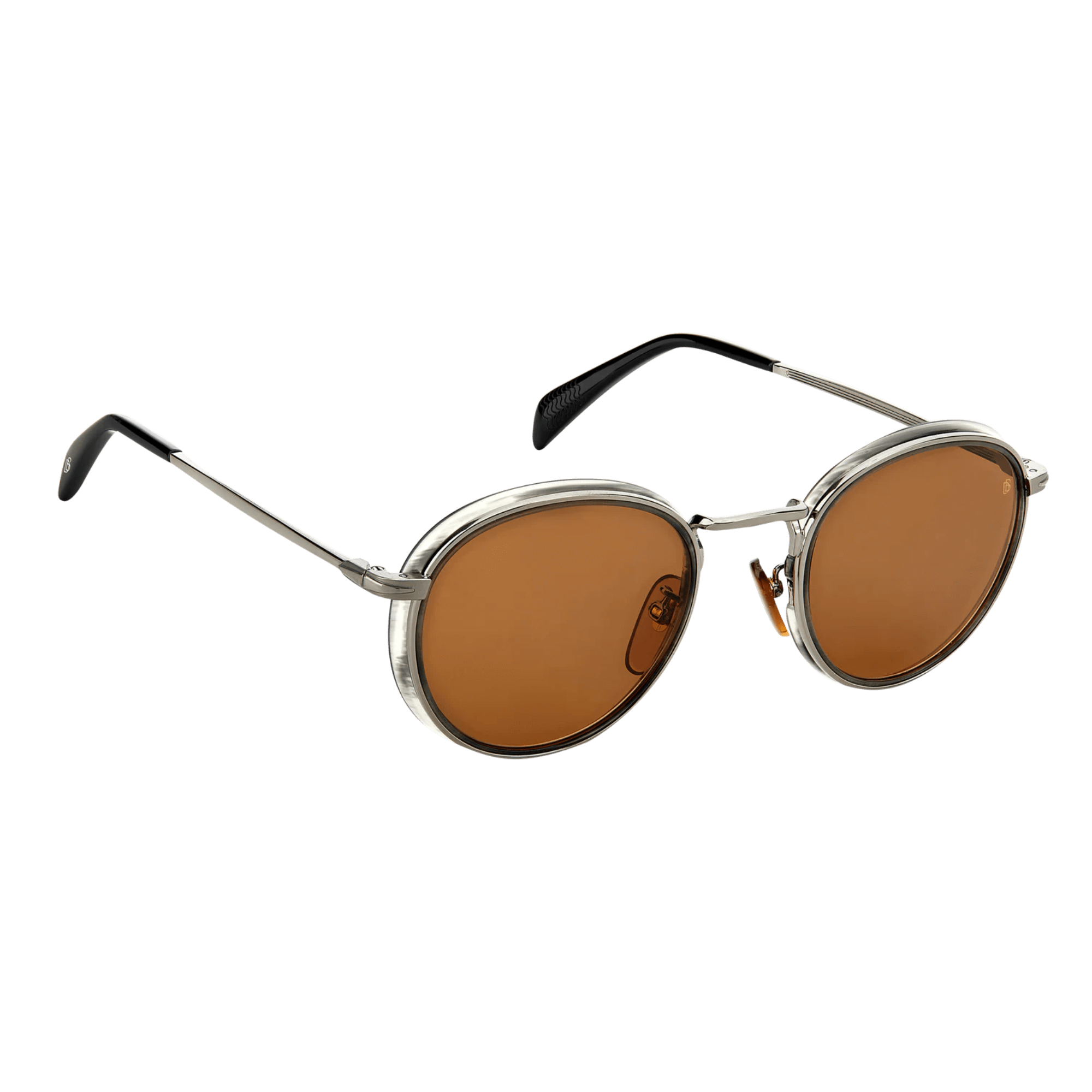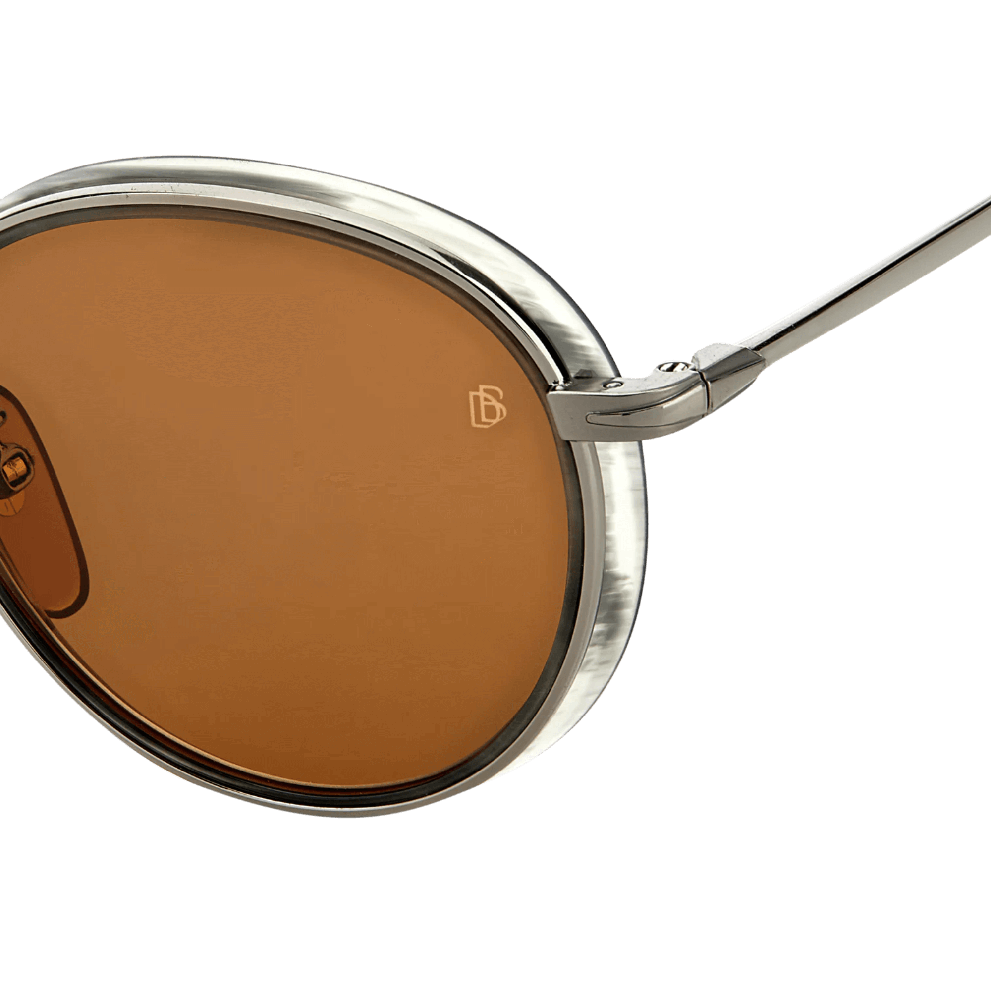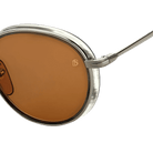 Effortlessly blending elegance with a touch of British audacity, these sunglasses demand attention with their full-rim round frames. Meticulously crafted from a fusion of metal and acetate, the layered composition adds depth and character to the gentle oval contours. Take note of the collection's distinctive temples and end tips – a perfect fusion of subtlety and unmistakable style.