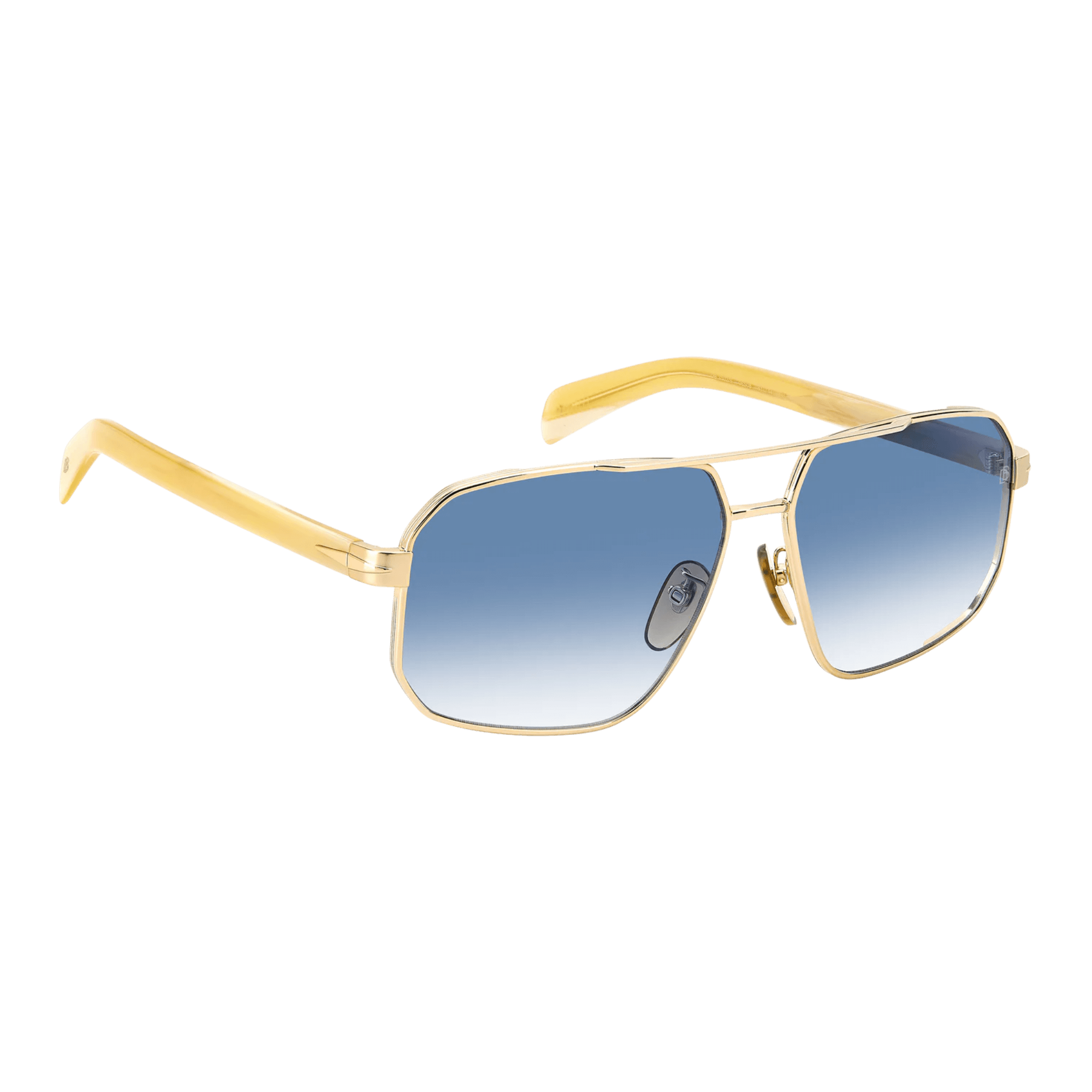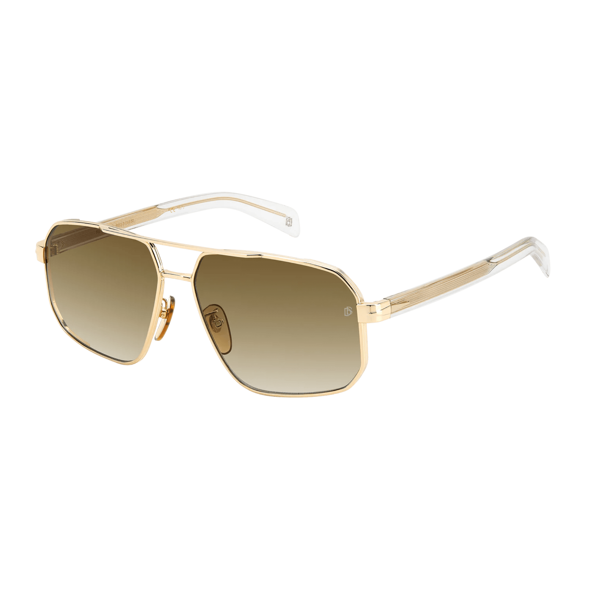 Featuring a double-bridge front, these sunglasses are crafted for sophisticated men with captivating charm. The metal frames, adorned in elegant tones, showcase iconic details synonymous with the brand: a chiseled metal wire core featuring the David Beckham wordmark, the wing-inspired rhombus on the temples, and the DB monogram on the molded end tips.