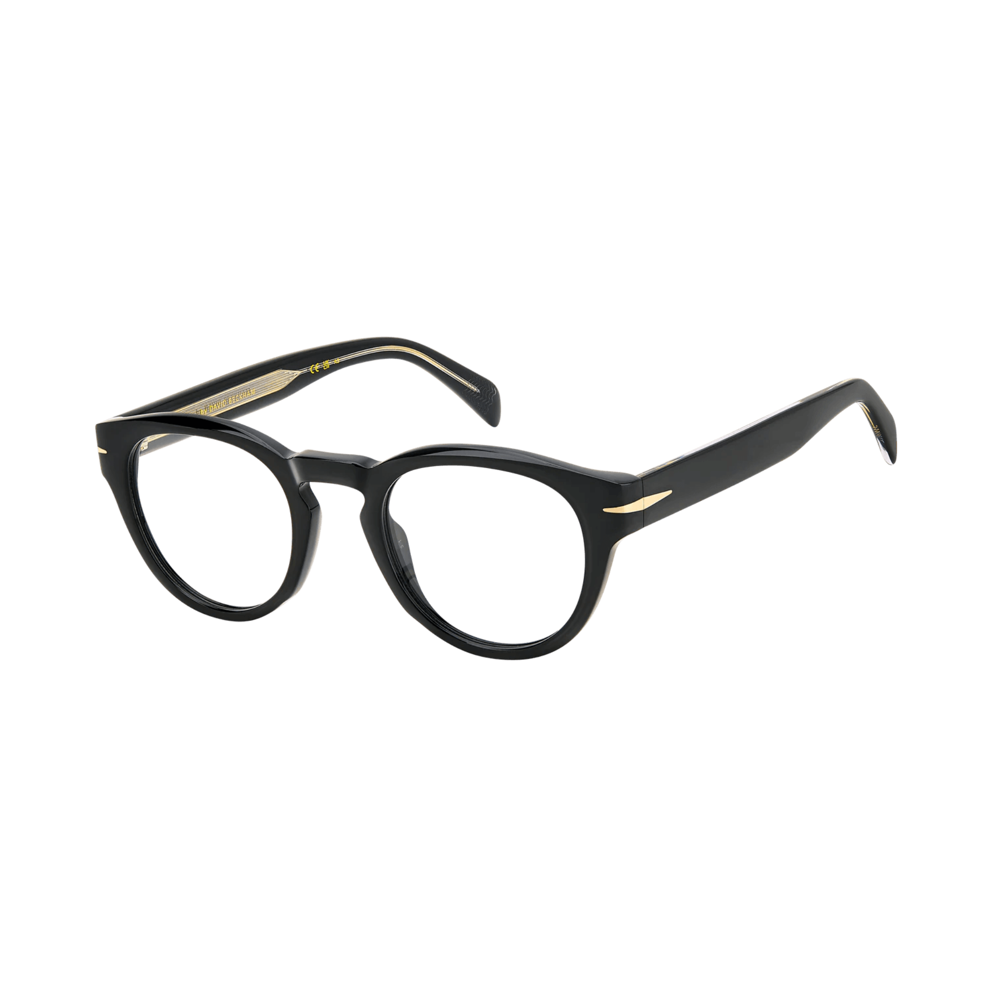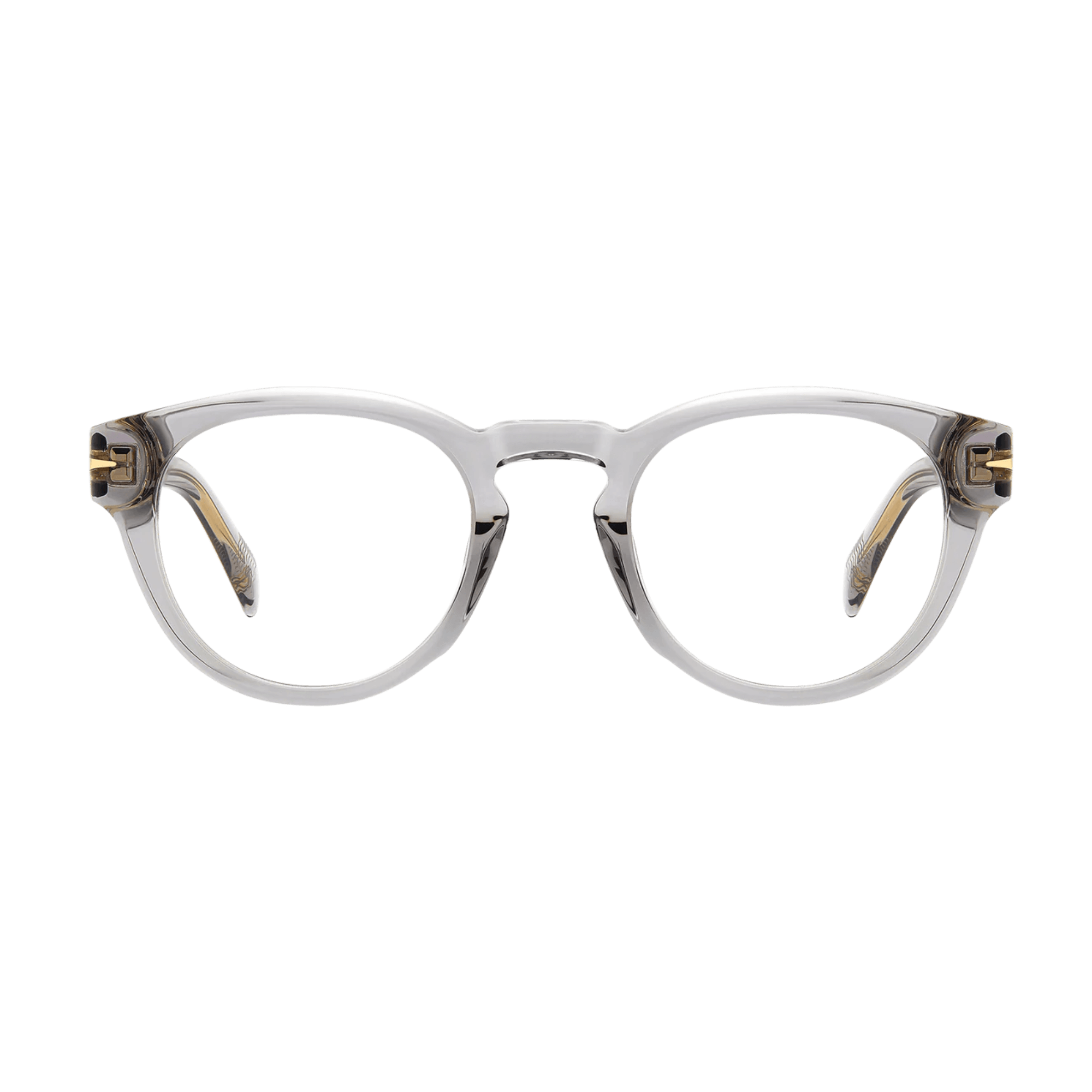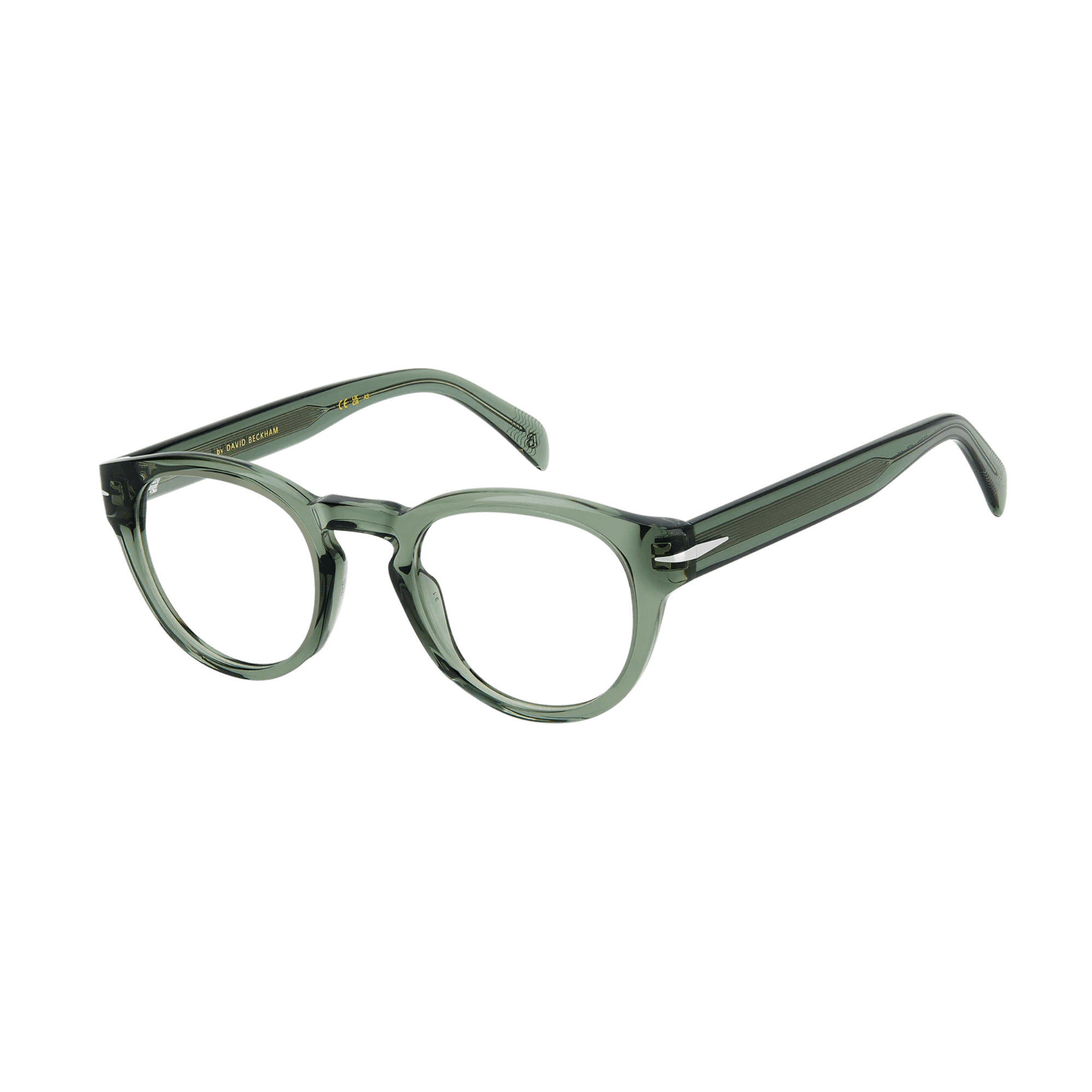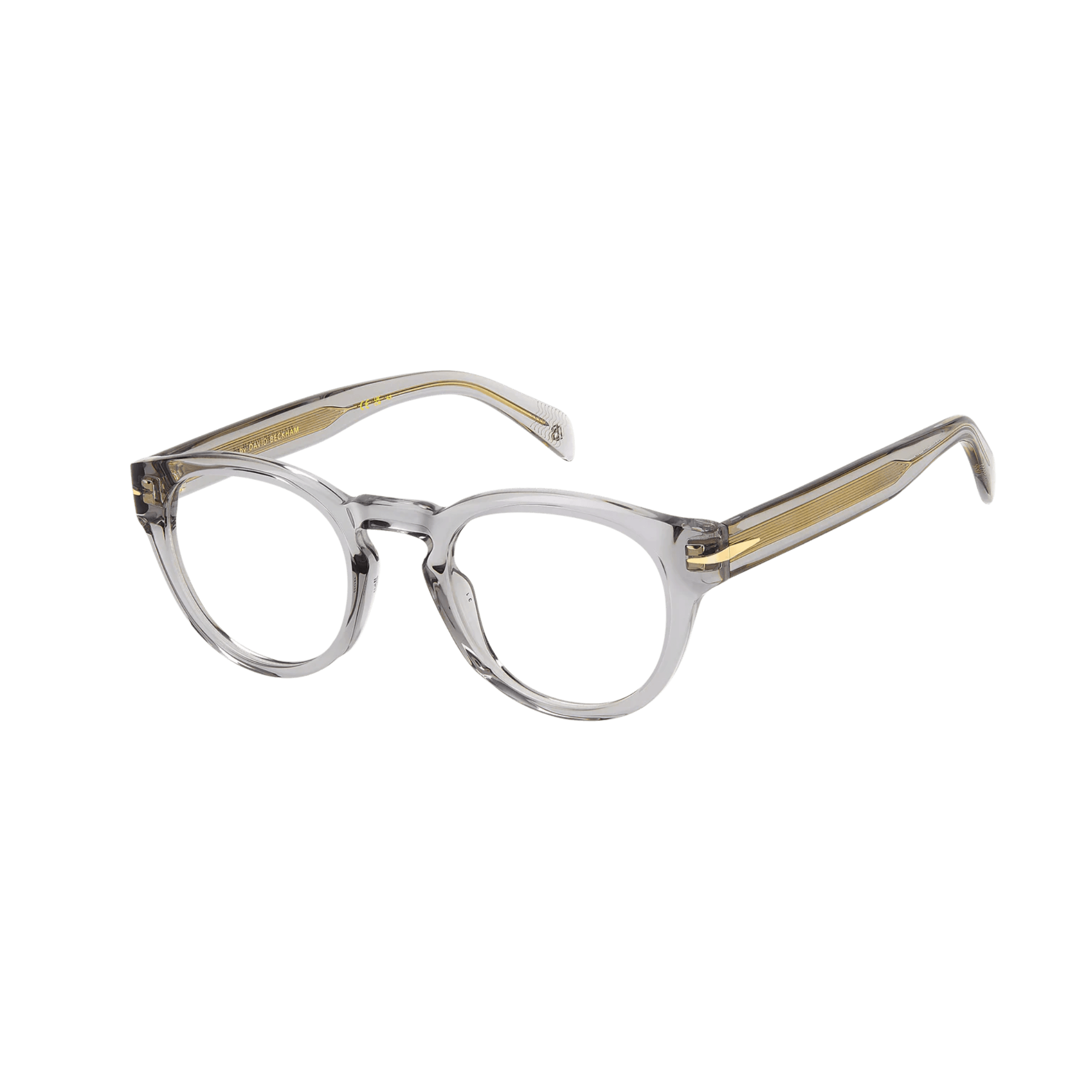 Featuring thick acetate frames, their interior carving ensures a lightweight design, while flexible hinges enhance comfort. The temples offer a clear option, showcasing a visible wire core. Across all variations, David Beckham's signature symbols adorn these glasses: the metal rhombus detail, the internal wordmark, and the monogram on the end tips.