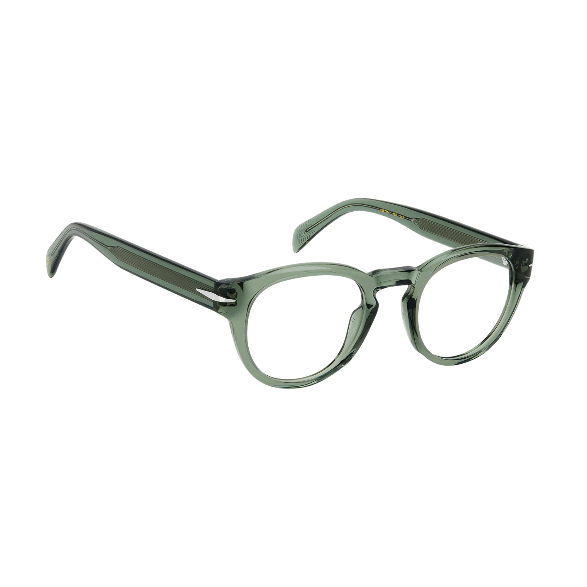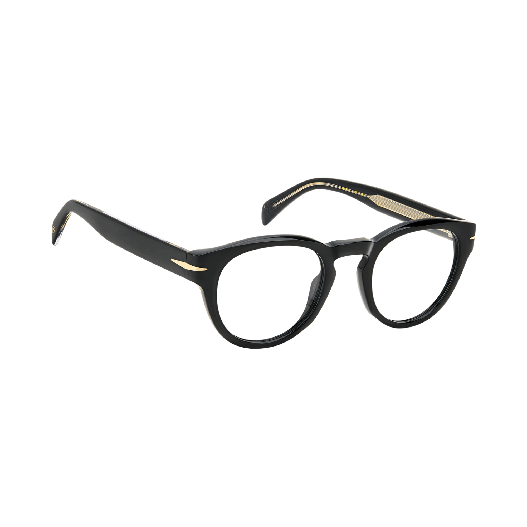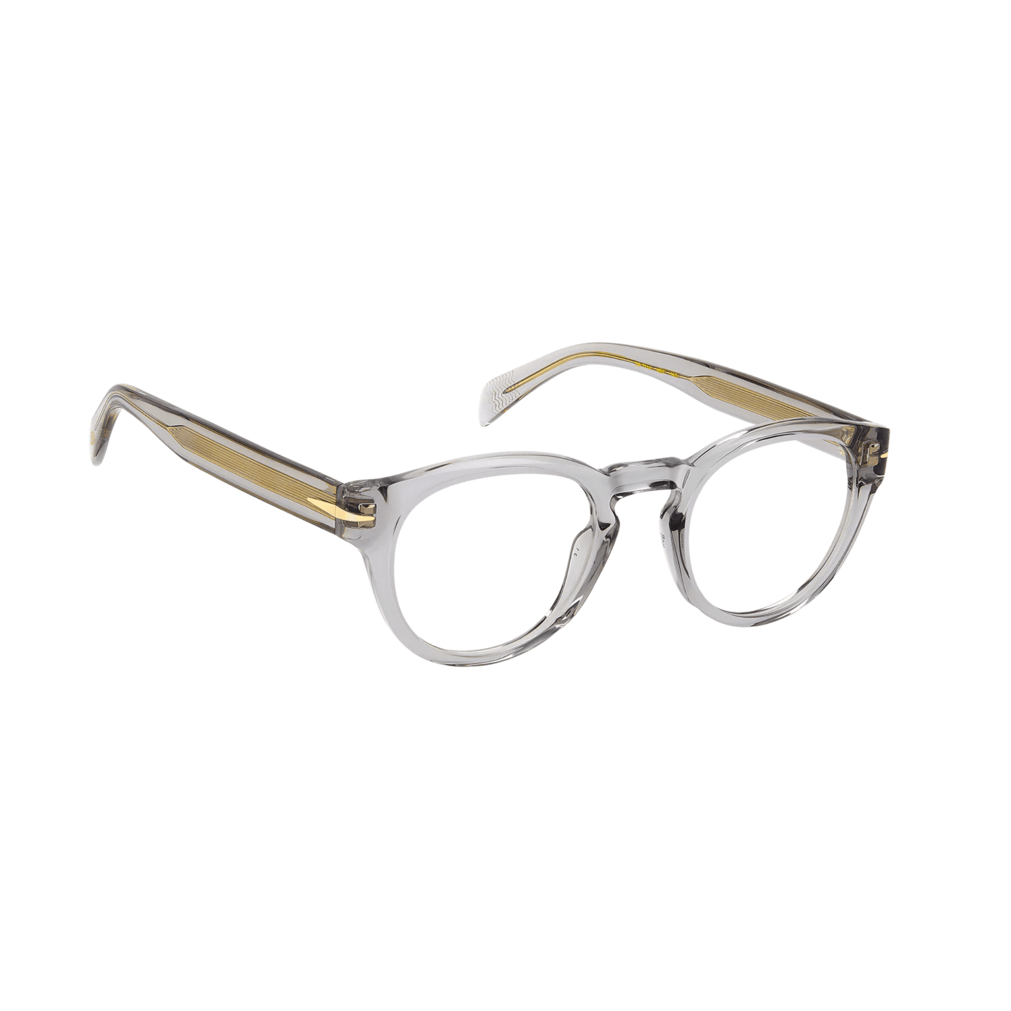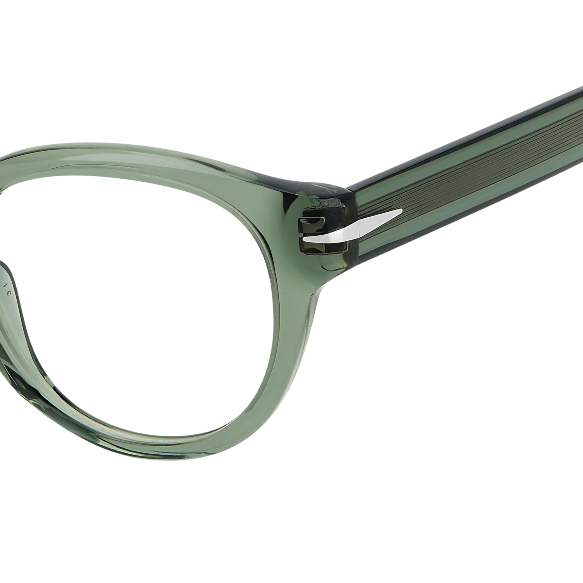 Featuring thick acetate frames, their interior carving ensures a lightweight design, while flexible hinges enhance comfort. The temples offer a clear option, showcasing a visible wire core. Across all variations, David Beckham's signature symbols adorn these glasses: the metal rhombus detail, the internal wordmark, and the monogram on the end tips.