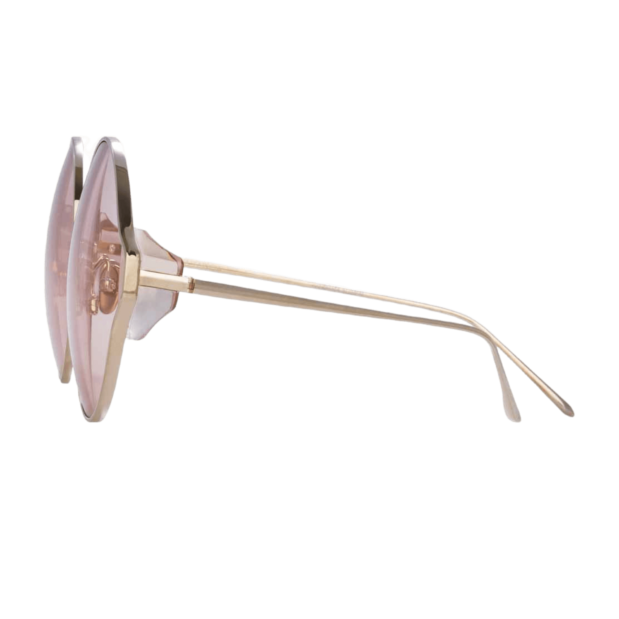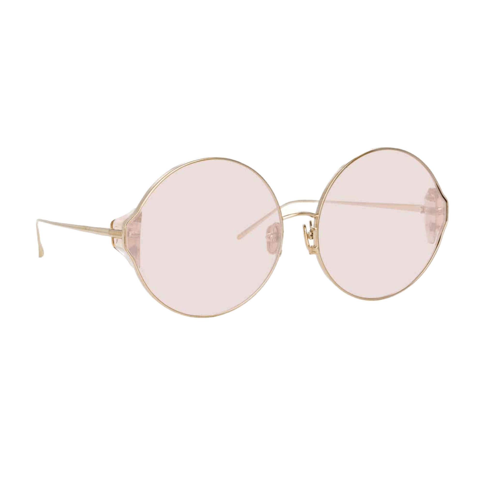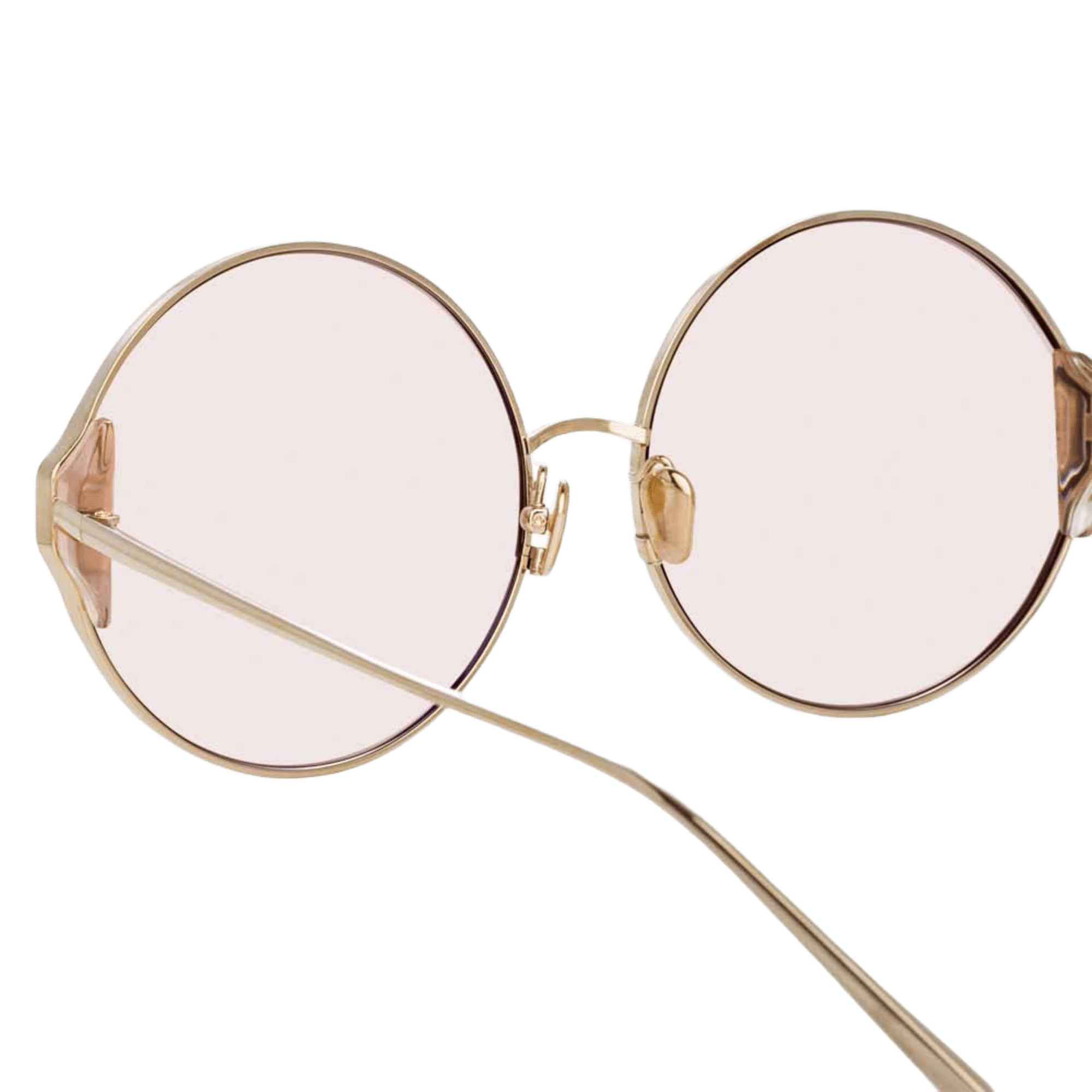 Carousel Linda Farrow 太陽眼鏡洋溢著馬戲團的魅力,為您的整體造型增添一抹活力。這款圓形太陽眼鏡採用18至22克拉日本鈦金屬精心打造,並鍍有淺金,搭配粉紅色鏡片,栩栩如生。鏡框邊緣飾有撞色煙燻醋酸纖維,更添精緻優雅,以俏皮優雅的風格提升您的風格。